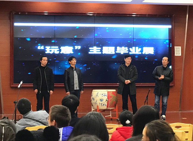 12月7号晚,立功楼外寒风呼啸,而6-2教室内则人声鼎沸,气氛热烈。在挂满彩色气球,温暖如春的教室里,我院15级广告专业举行了以“玩意”为主题的毕业展开幕式。中国人民大学文化产业学院驻昭山文化产业园李春辉副主任出席此次毕业展,我院院长刘奇玉教授、历史系主任周方高教授、广告学系系主任周平教授、乐动在线广告学系副主任曹佳骊副教授等老师、校党委宣传部对外宣传工作小组王晶彤和袁悦、赞助商影神摄影童忠文以及15级广告专业全体同学参加此次毕业展。