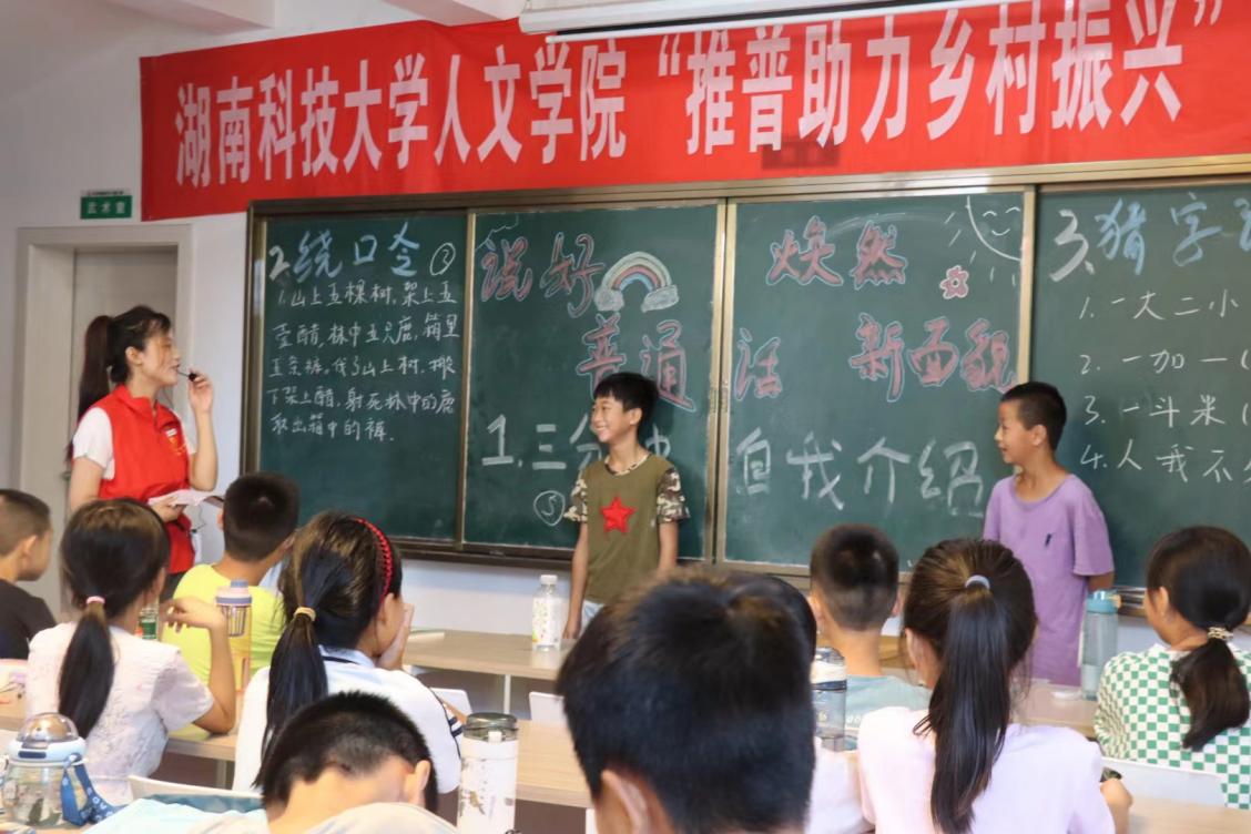 7月9日上午,株洲攸县石羊塘镇儿童之家传来了一阵又一阵的鼓掌声,四年级孩子们的欢笑声此起彼伏地传来。走进教室一看,是志愿者龙杨慧在教孩子们读绕口令。“发扬国风,从说中国话起;说中国话,从普通话开始。”为了圆满完成推普助力乡村振兴的志愿服务目标,在乡村大力推广普通话,传承优秀传统文化,为此乐动在线乐动在线“三下乡”实践团队在暑期学校展开三下乡特别课堂第三期:说好普通话,焕然新面貌。