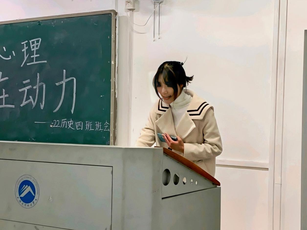 各年级班级在学院号召下,相继开展班会。22级新闻一班通过线上班会形式,围绕大学生现存心理问题进行分析,班会内容包括演讲、合唱歌曲多个环节,致力于在轻松欢快的氛围中让同学们对自身的心理健康认识更加深刻。22级历史四班则通过对学生的心理健康普查,初步了解到的学生心理状况,针对性地进行心理健康宣传和教育。