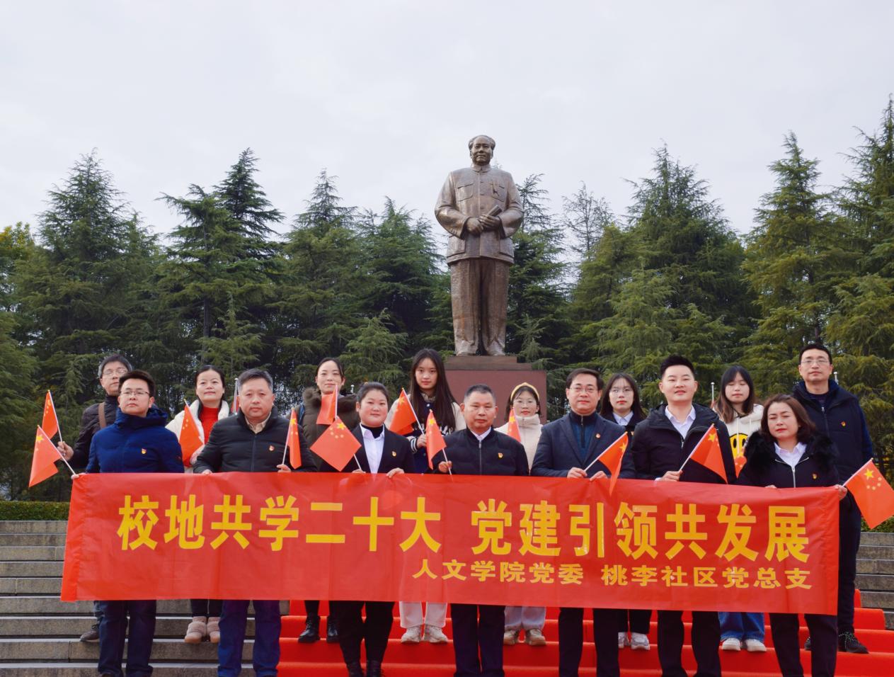 为深入学习贯彻党的二十大精神、促进校地高质量融合发展,12月15日上午,乐动在线乐动在线党委书记曾志东、党委副书记邓辉、副院长李康澄、全体学工办老师、部分学生党员及桃李社区党员代表共赴韶山毛主席故居开展了以“校地共学二十大 党建引领共发展”为主题的联学共建活动。