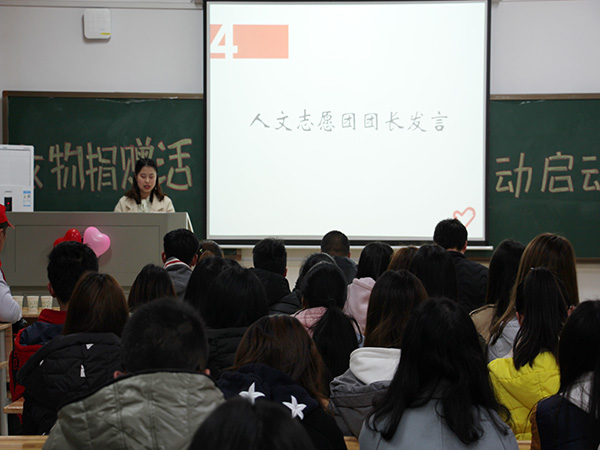 启动仪式上,商学院青年志愿团指导老师陈翠在发言中高度赞扬了本次衣物捐赠志愿活动,她说,“赠人玫瑰,手有余香。但衣物捐赠志愿活动种下的是一片玫瑰园。”商学院青年志愿团副部长陈婧雯介绍了本次志愿活动的进展情况——322日,志愿团在学校各区进行摆点宣传,在学生中间获得了良好反响,经过多方努力,已在我校引进了13个回收箱。