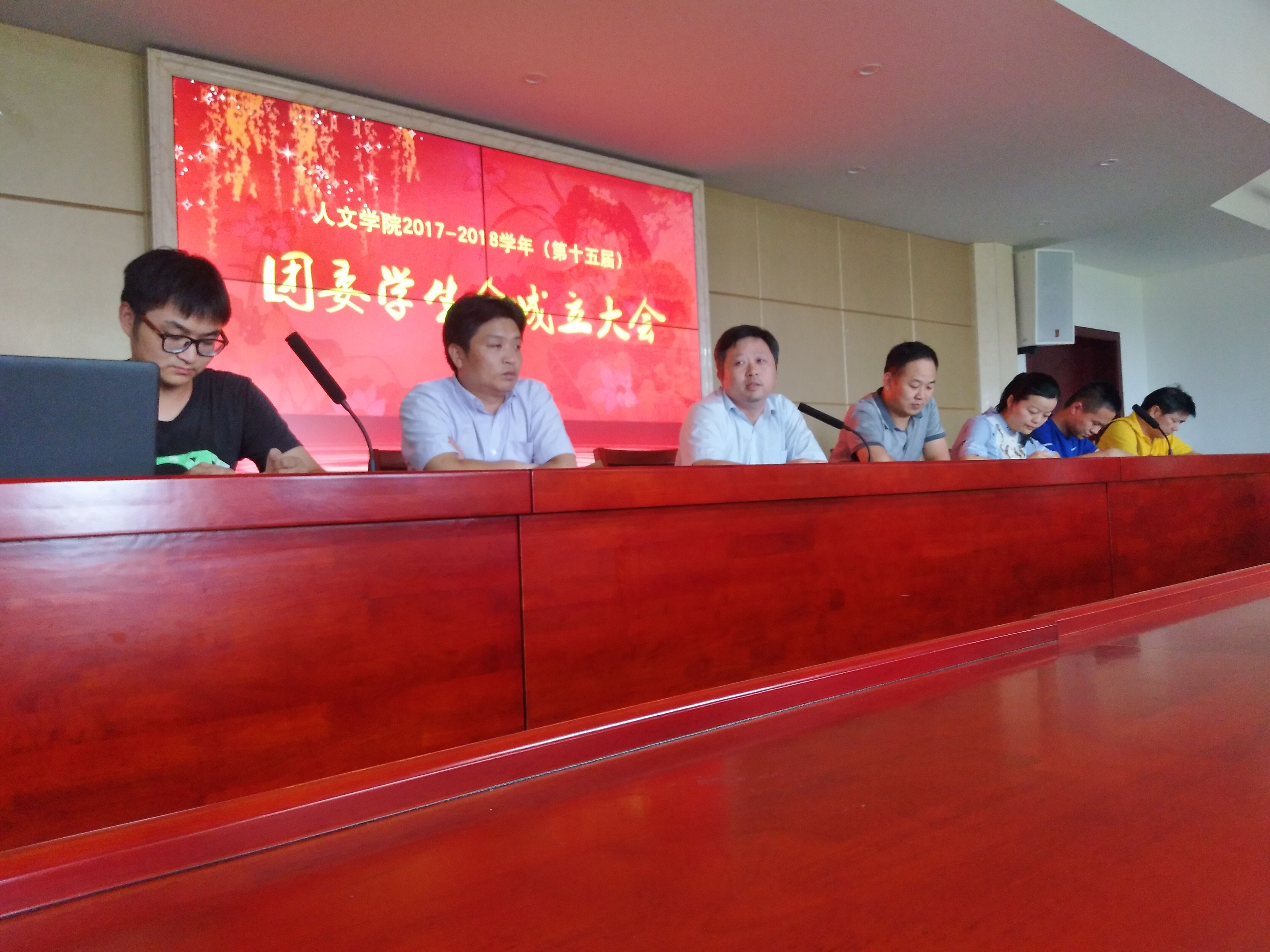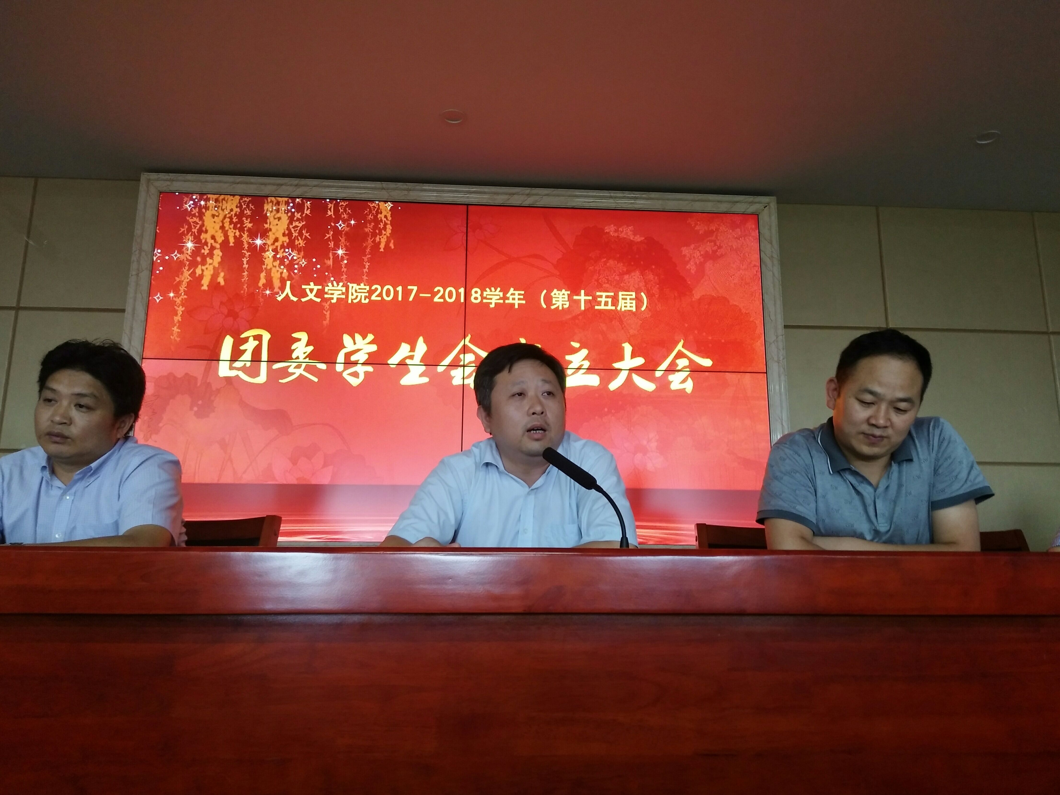 会议伊始,赵华老师宣读2017-2018学年团委学生会干部名单并对新一届的干部成员致以热烈的祝贺。掌声热烈起伏,学生会干部全体起立,认真宣读干部承诺书,承诺在未来一年的学生会干部生涯中,将尽自己最大的努力做到最好,为学院、为同学贡献自己的一份力量。