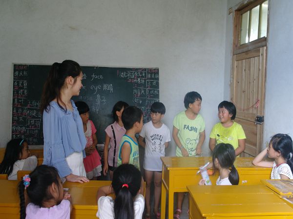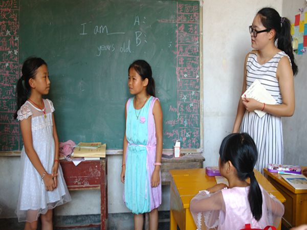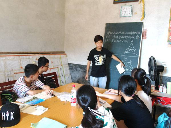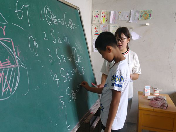 “蒹葭苍苍,白露为霜,所谓伊人,在水一方,溯洄从之,道阻且长……”初三的课堂上,志愿者李煜用简洁易懂、颇具古文美感的方法为孩子们讲解着《诗经·蒹葭》,他鼓励孩子们结合意境,理解晦涩字词,分析表现手法。“我逆着回旋的水流去追寻她,道路艰难而漫长,此句流露出主人公追求意中人而不可得的惆怅。”初三的刘清清表明了自己对诗句的理解。“How old are you?,I am eleven years old.”英语课上,志愿者叶甜要求孩子们用英语交流,锻炼口语能力。在她的鼓励下,孩子们踊跃上台对话,兴奋地介绍自己的英文名。六、七年级的教室里,志愿者鞠广政采用公式与题目结合的方式进行几何教学,孩子们则积极与老师互动,用粉笔快速在黑板上写下答案,并自信地走上讲台参照着几何图形讲解自己的解题思路。