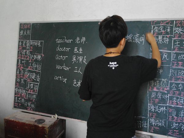 719日清晨,看见志愿者到达学校,正在教室外玩耍的孩子们跑过来紧紧抱住志愿者,仰着脸,露出洁白的牙齿,微笑地望着志愿者。志愿者拉着他们的手慢慢走进教室:“我们开始上课了!