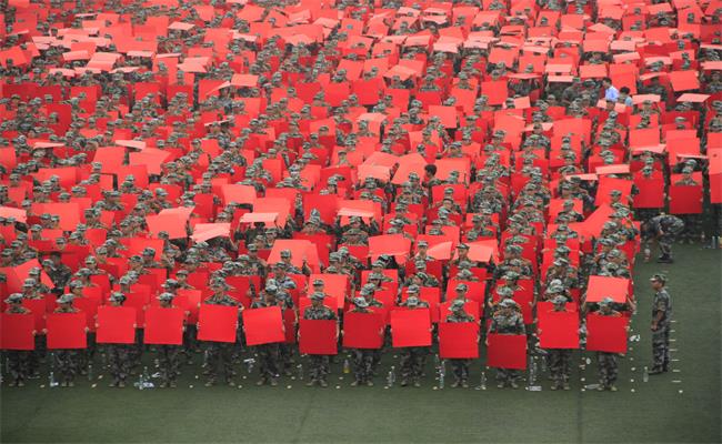 秋意来袭,浩荡绿军装大队,在绿荫田径场上,每人高高举起一块块红黄两面的正方形纸板,今年的新生军训队伍要搞怎样的大事情?10月10日,乐动在线全体新再次集结于北校田径场,参与全校军训新生摆字活动排练。活动现场由大学生军训团四位大四教官指挥,各排教官负责保持各排现场纪律,组织新生根据总指挥进行大规模的摆字排练。