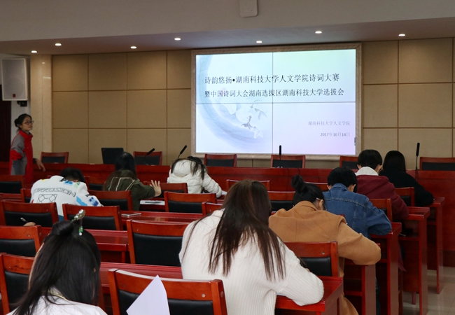 为响应传播中华优秀传统文化的号召,传播中华悠久文化精髓,彰显华夏诗词独特魅力。10月14日,我院在文科楼4-1会议室成功举办“诗韵悠扬.乐动在线乐动在线诗词大赛暨中国诗词大会湖南选拔区乐动在线选拔会”,我院学工办赵晗冰老师进行现场监考,我院共18名来自不同专业的学生共同参与此次诗词大赛的激烈角逐。