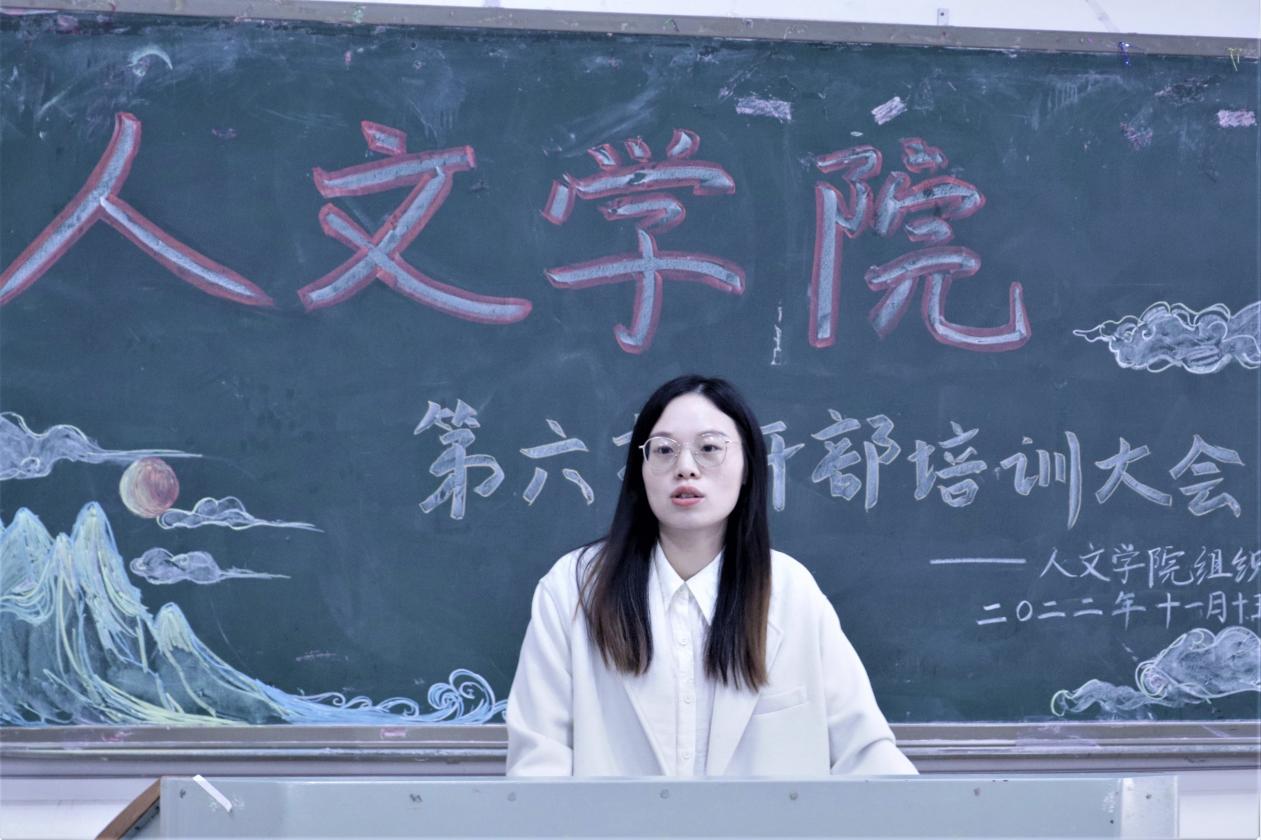 赵文静老师针对学生干部接下来的学习工作提出三个珍惜原则,第一,珍惜干部培训平台,多多学习技能知识;第二,珍惜学院平台,多交往一些志同道合的朋友;第三,珍惜时间,养成良好习惯,在大学四年里能学有所获。杨燕老师在发言中说道:“希望通过这次专业培训会,各位学生干部能开阔思想、提高能力,尤其要锻炼好创新实践能力和组织协调能力,培养出一个政治坚定、素质过硬的学生干部团队。”团委学生会主席李雅梅表示,学生干部要以身作则,公正处事,正确处理学习工作的关系,各部门应当团结协作,自觉为同学们服务,共创我院新的辉煌。