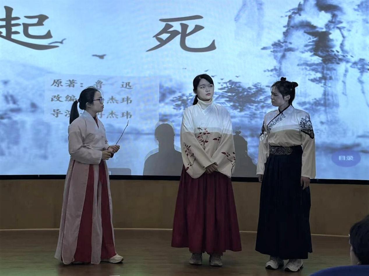 随后,李文浩老师紧扣“鲁迅最后的创新之作”的主题,对《故事新编》最后一篇在形式和内容都有明显创新的《起死》作了具体分析。为了让同学们清楚的感受其思想魅力,她指导学生将《起死》改编为话剧,并进行了课堂表演,课堂氛围十分活跃。