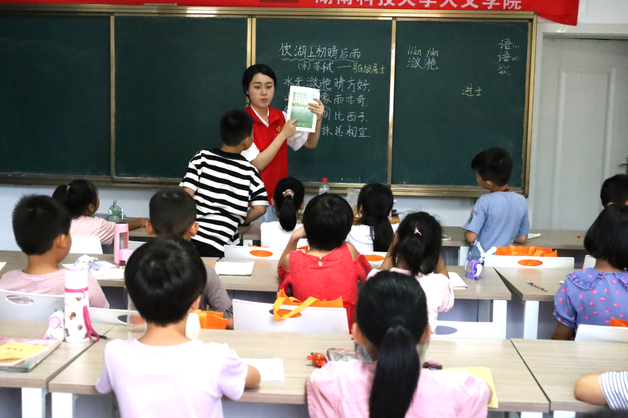 为深入贯彻习近平总书记关于教育的重要论述,加大农村地区国家通用语言文字的力度,践行志愿服务精神,发挥专业优势,助力乡村振兴。7月8日,乐动在线乐动在线暑期“三下乡”社会实践团队在株洲市攸县石羊塘镇高桥少儿假期学校开展主题为“吟诵神州音 共筑华夏情”的推普活动,为乡村振兴,贡献语言力量。
