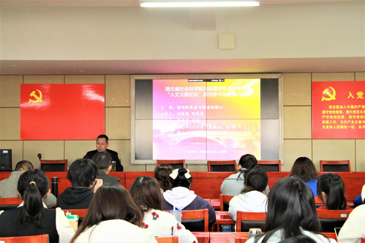 3月31日下午,由乐动在线乐动在线主办的“人文大家论坛”第240讲于立言楼B4-1室举行。湖北省社会科学院二级研究员刘保昌先生应邀为我院师生做题为“影响的焦虑与创造的雄心”的学术讲座。本次讲座由李胜清教授主持,刘郁琪、胡志明、梁小娟、邓桂英等老师以及汉语言文学专业研究生和本科生到场聆听。