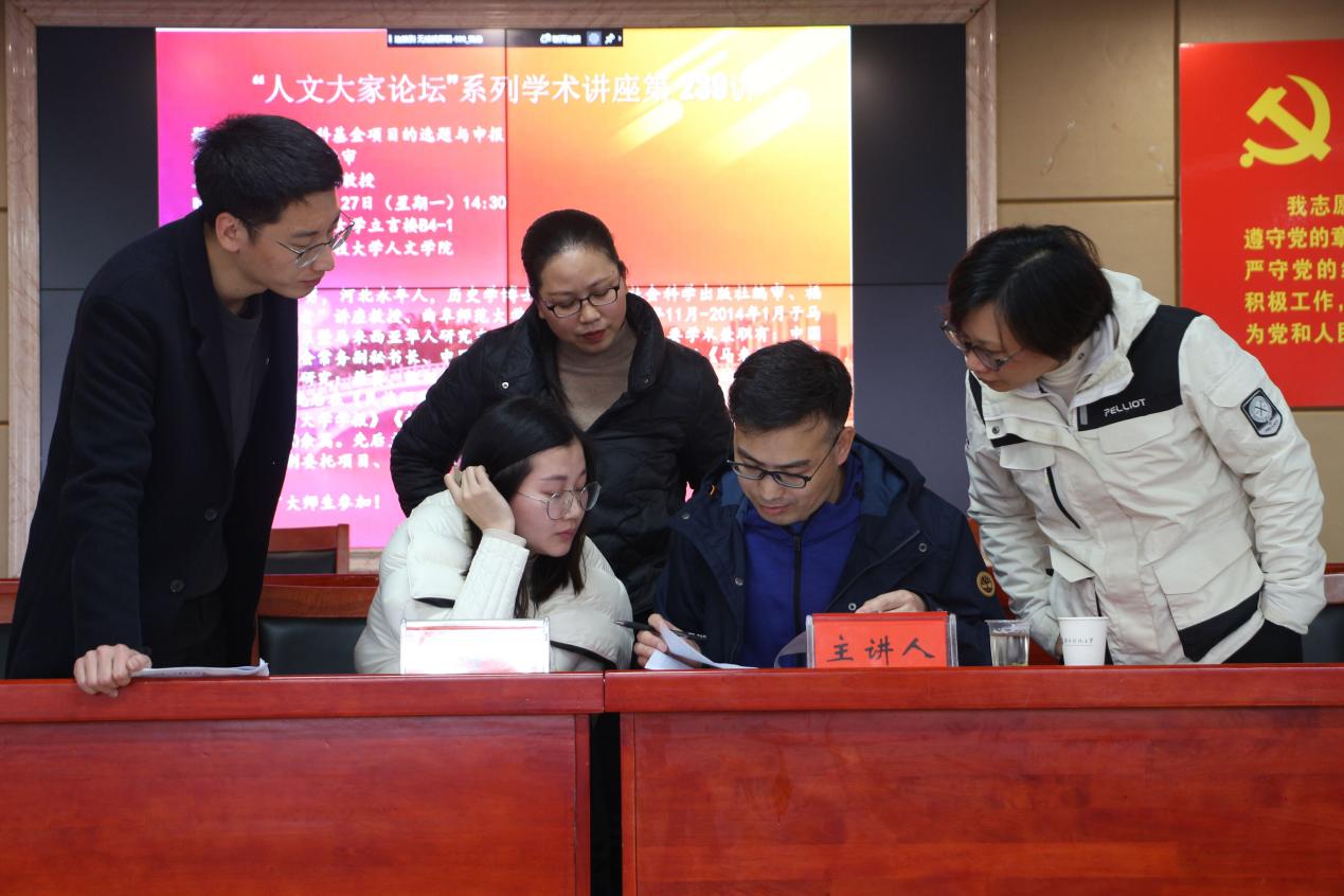 在讨论交流环节中,宋燕鹏老师对在座教师的项目申请书一一进行了分析,并提出具体修改意见,如学术研究动态应具有高度概括性、课题研究价值应详细阐述、参考文献的格式应规范统一等等。在座教师纷纷表示自己在此次讲座中受益匪㳀。